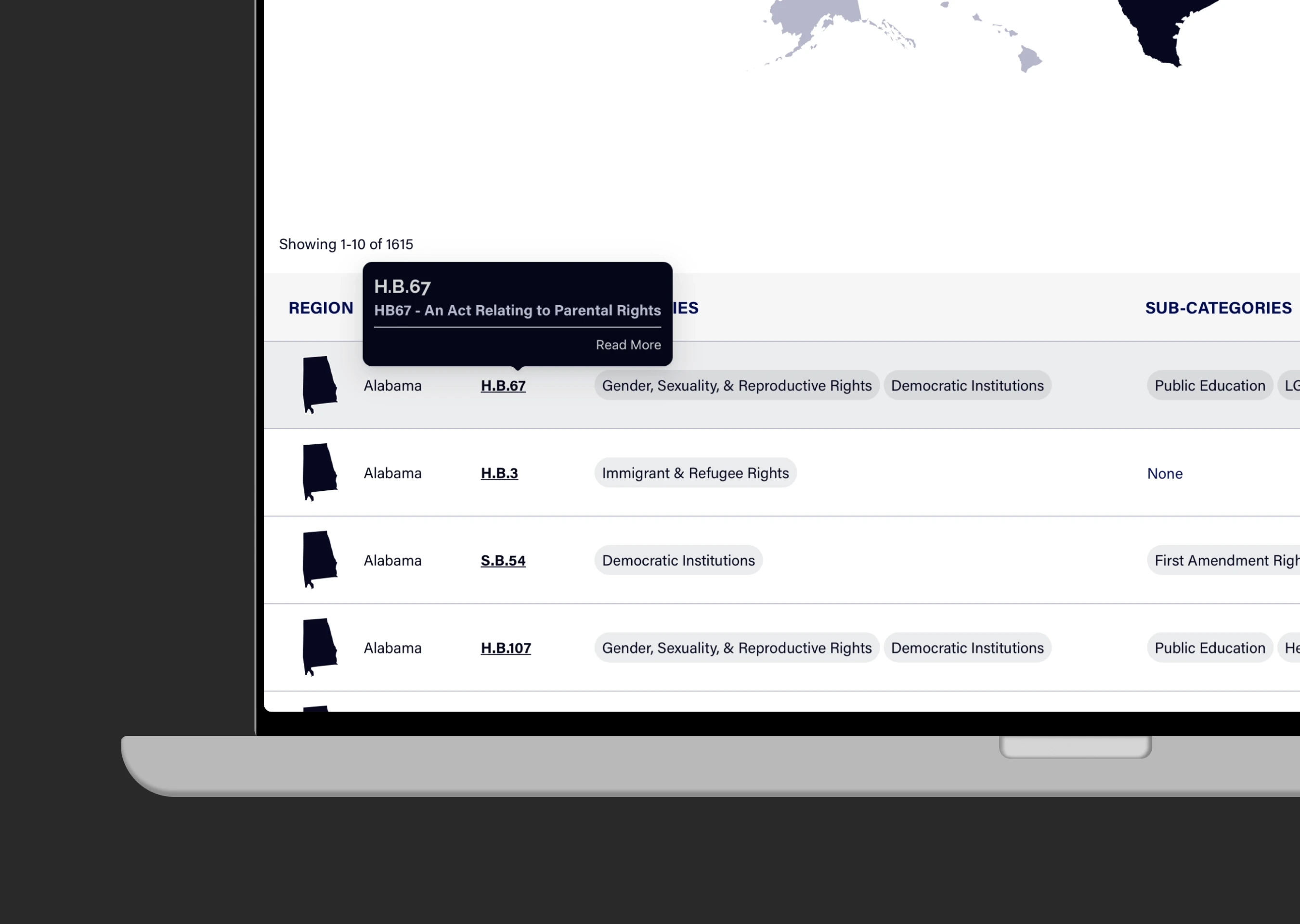 Track and map harmful legislation